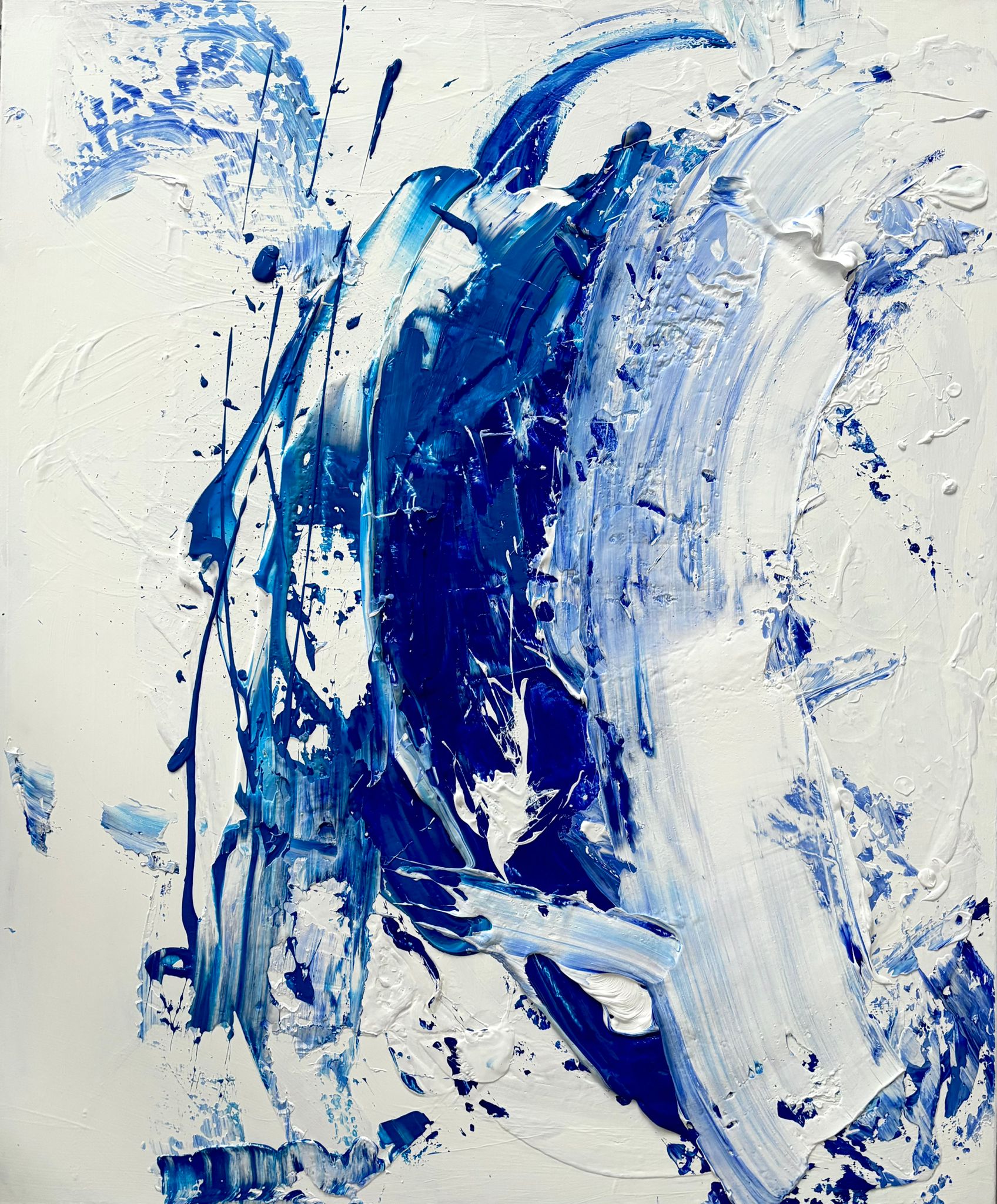 Leinwanddruck, abstrakt in Weiß-Blau – OCEAN (horizontal)