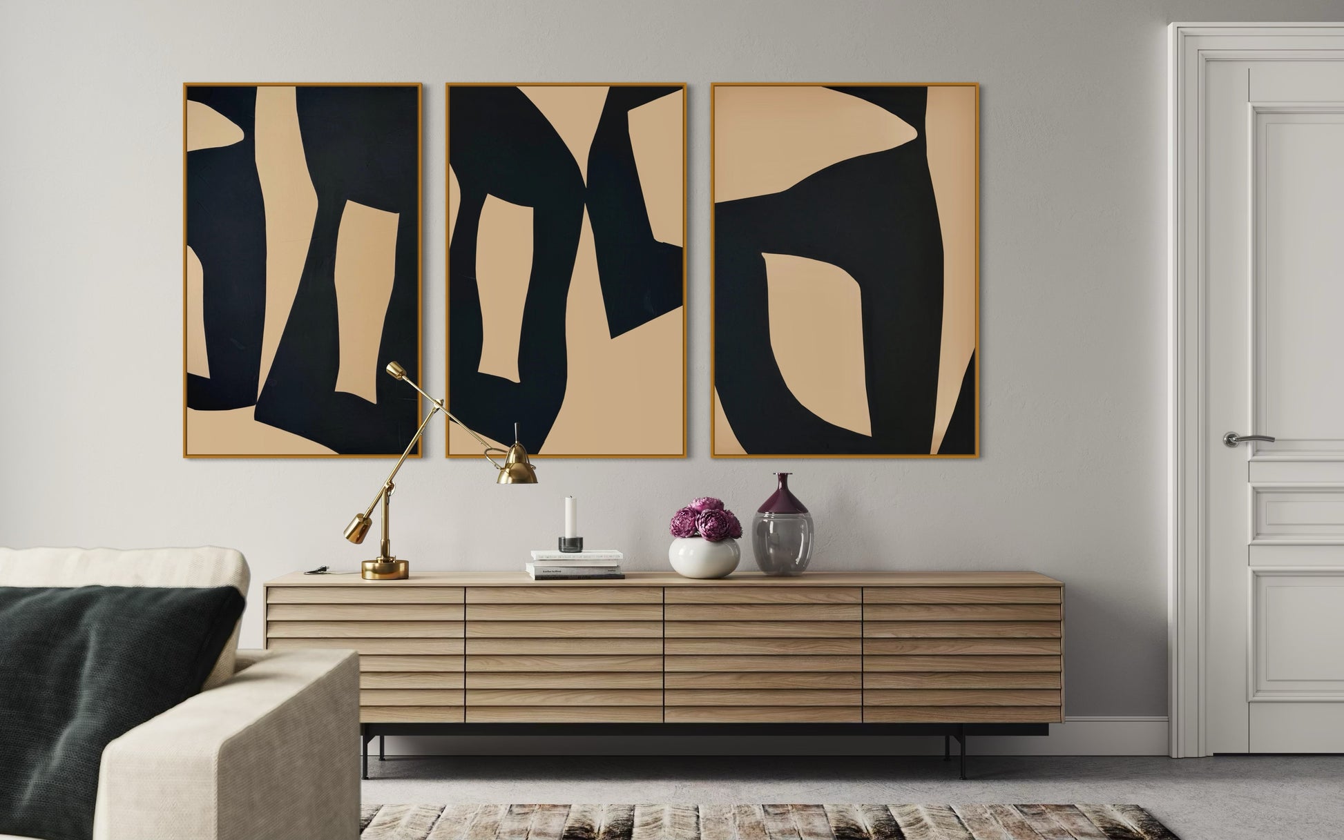 Set 3 – Abstrakte Leinwanddrucke in Schwarz- und Karamelltönen (3-teilig)