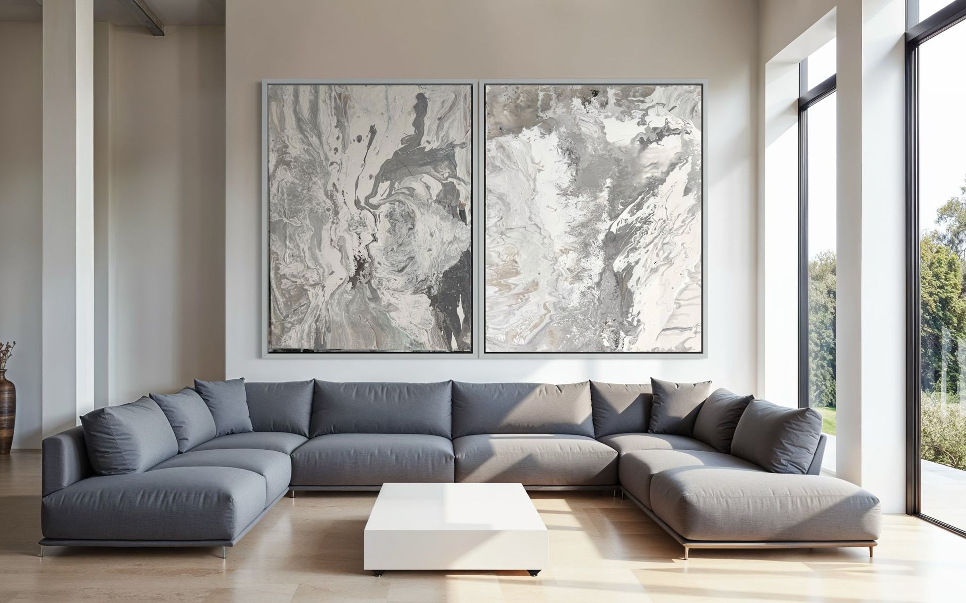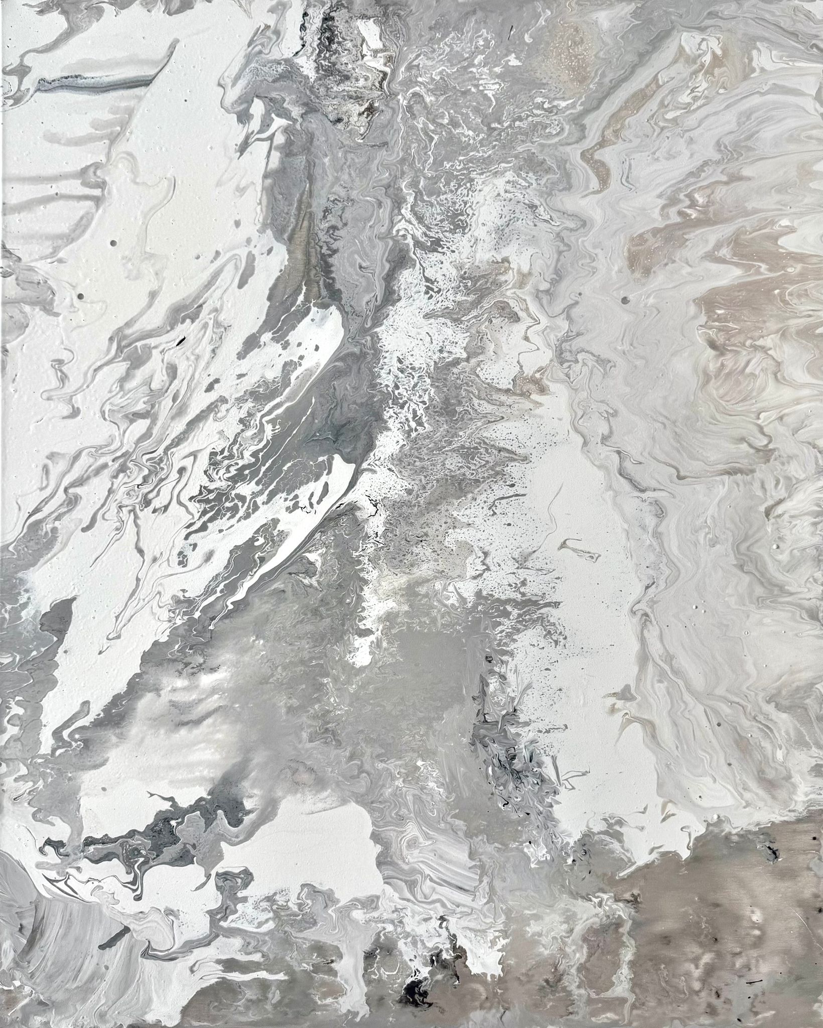 Abstract canvas print, hand-painted in shades of grey – RAW BALANCE (vertical)
