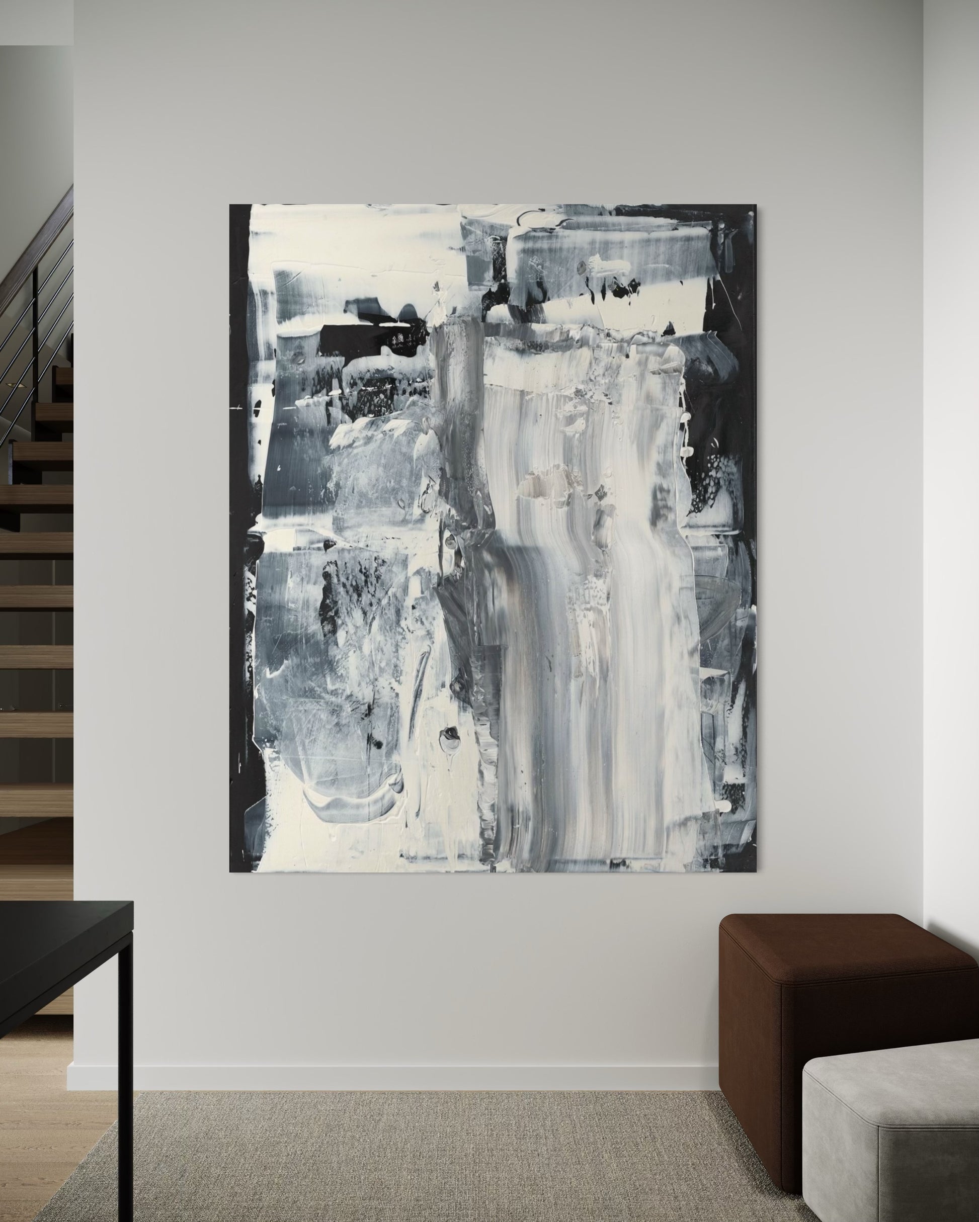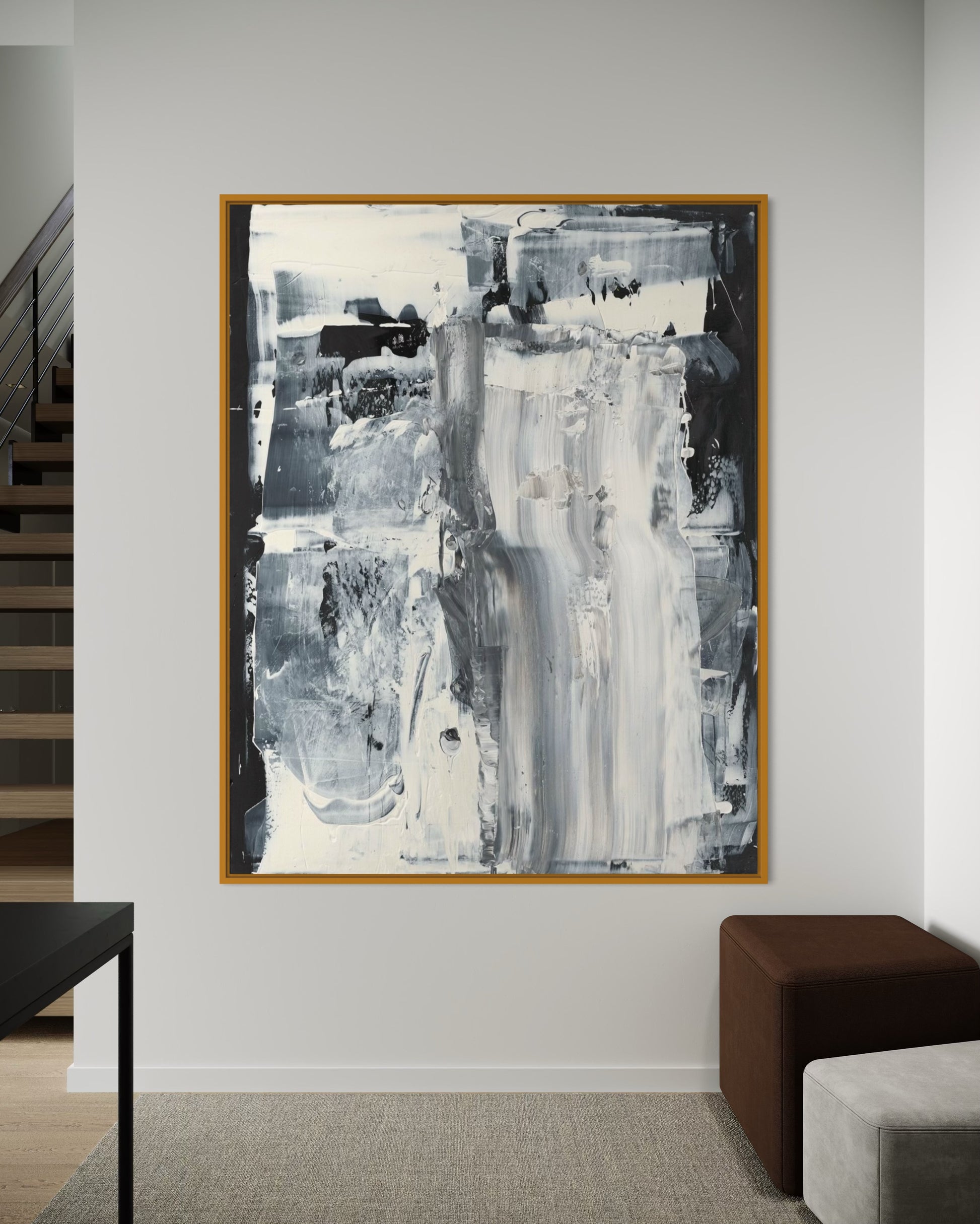 Abstract canvas print in black-and-white tones – ROW HARMONY