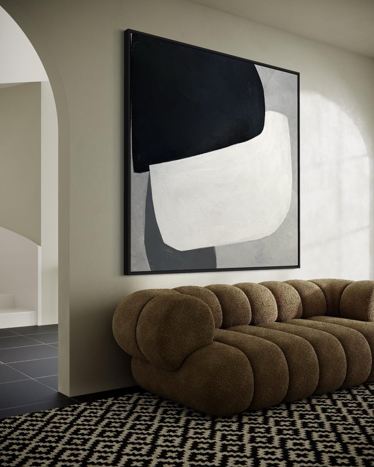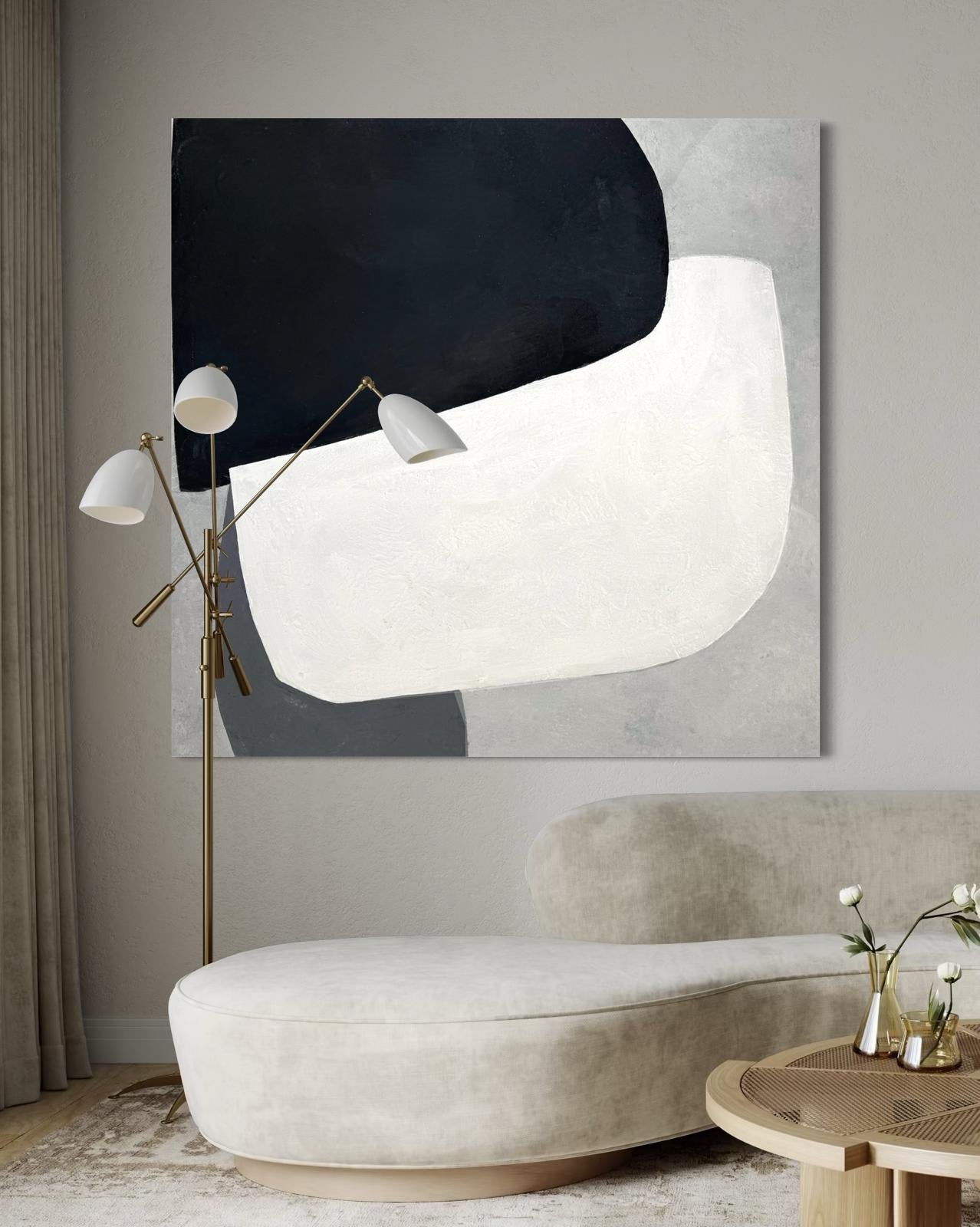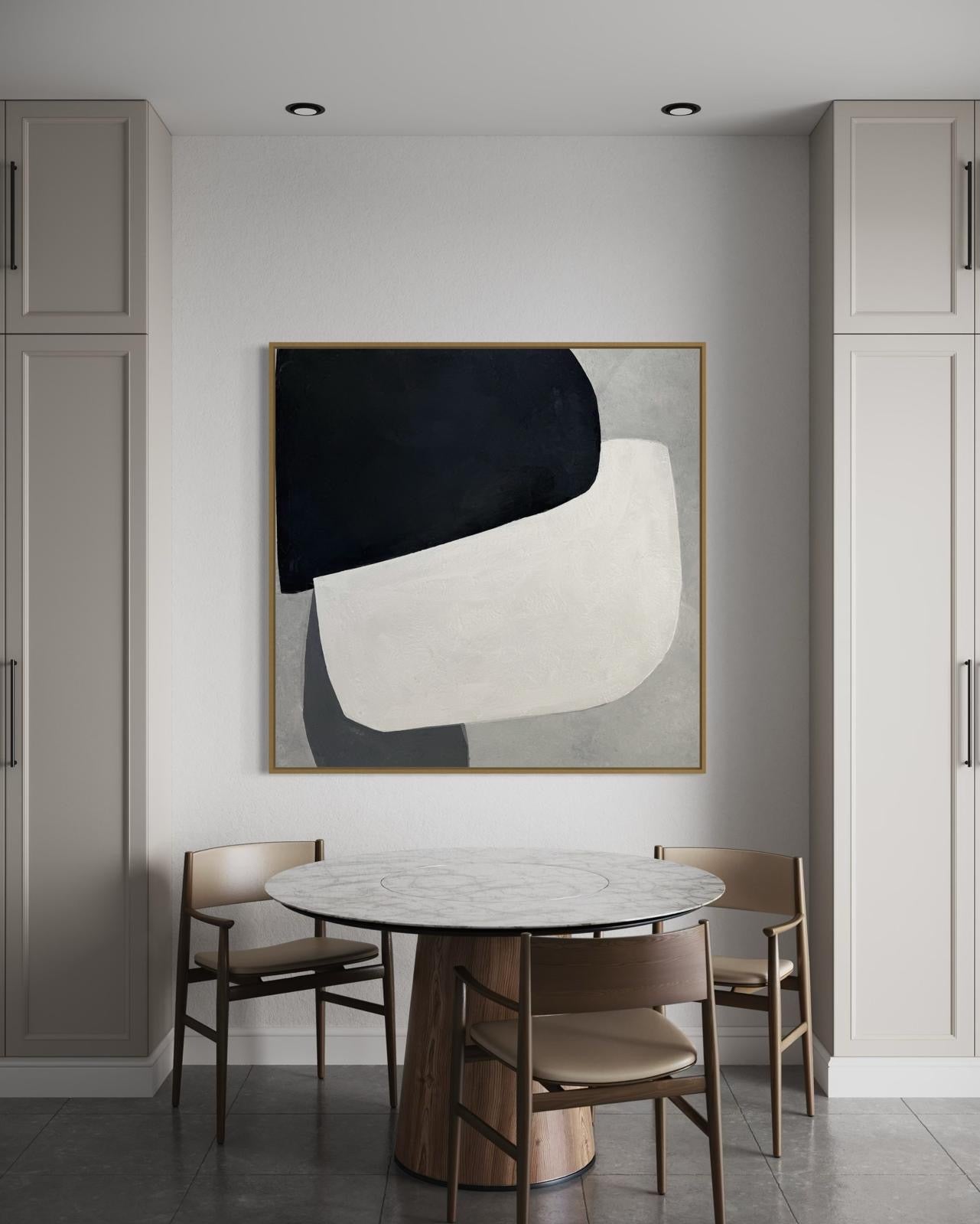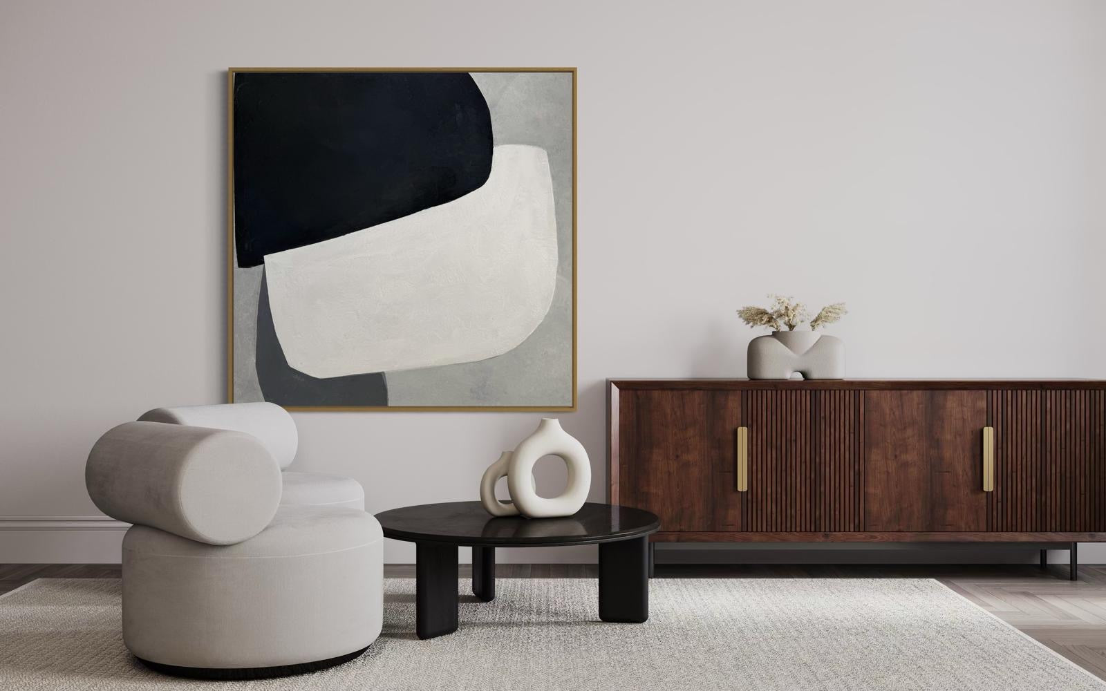Obraz abstrakcyjny na płótnie w kolorach czerni-bieli i szarości - BALANCE OF FORMS