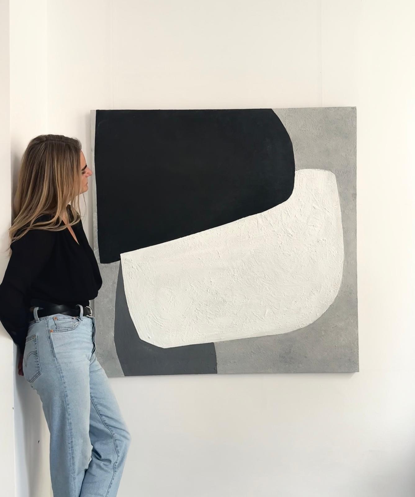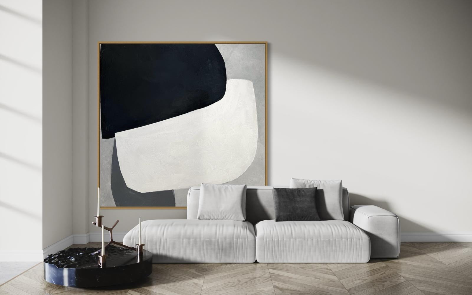 Obraz abstrakcyjny na płótnie w kolorze biało-czarno-szarym - BALANCE OF FORMS