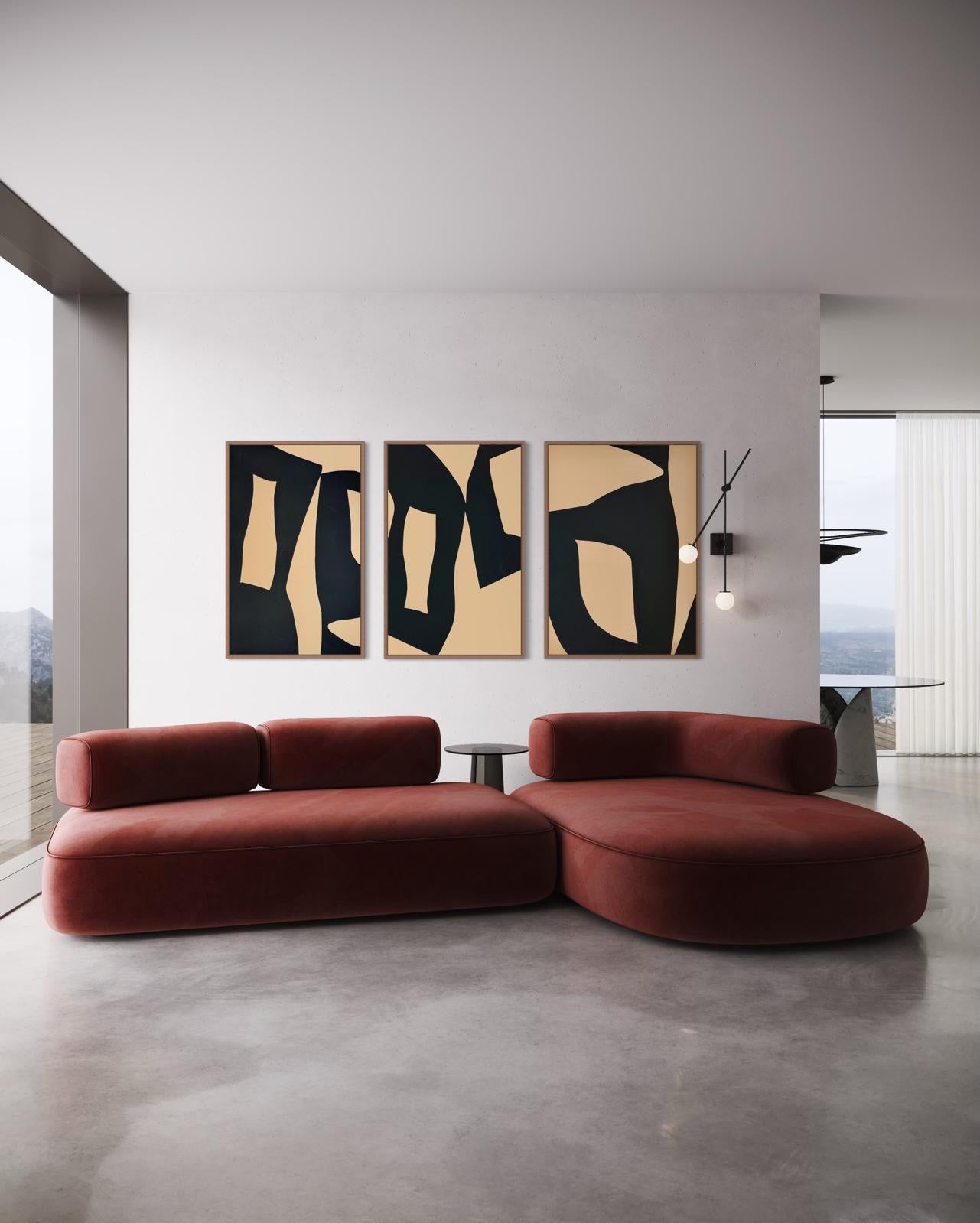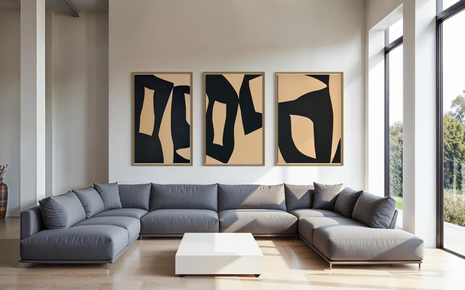 Zestaw 3 – Obrazy abstrakcyjne na płótnie w kolorze czarno-karmelowym (3 sztuki)