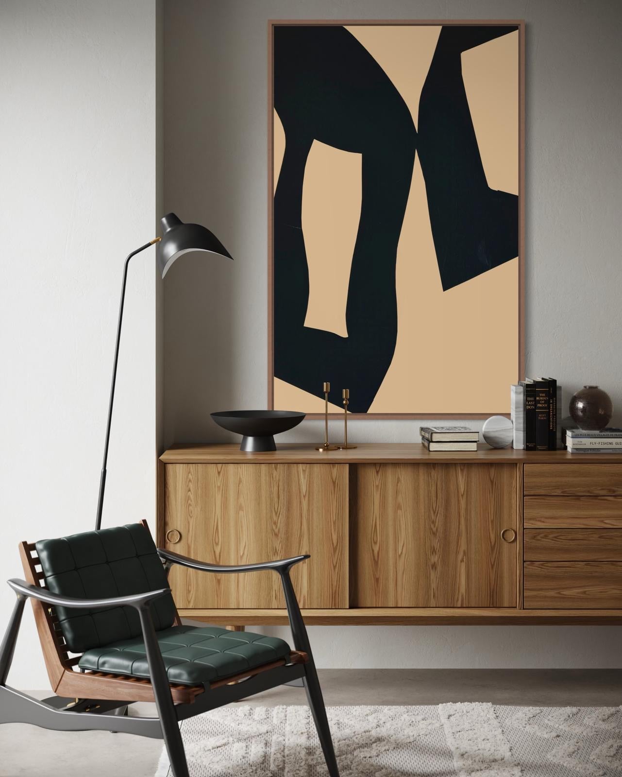 Obraz abstrakcyjny na płótnie w kolorze czarno-karmelowym - BALANCE