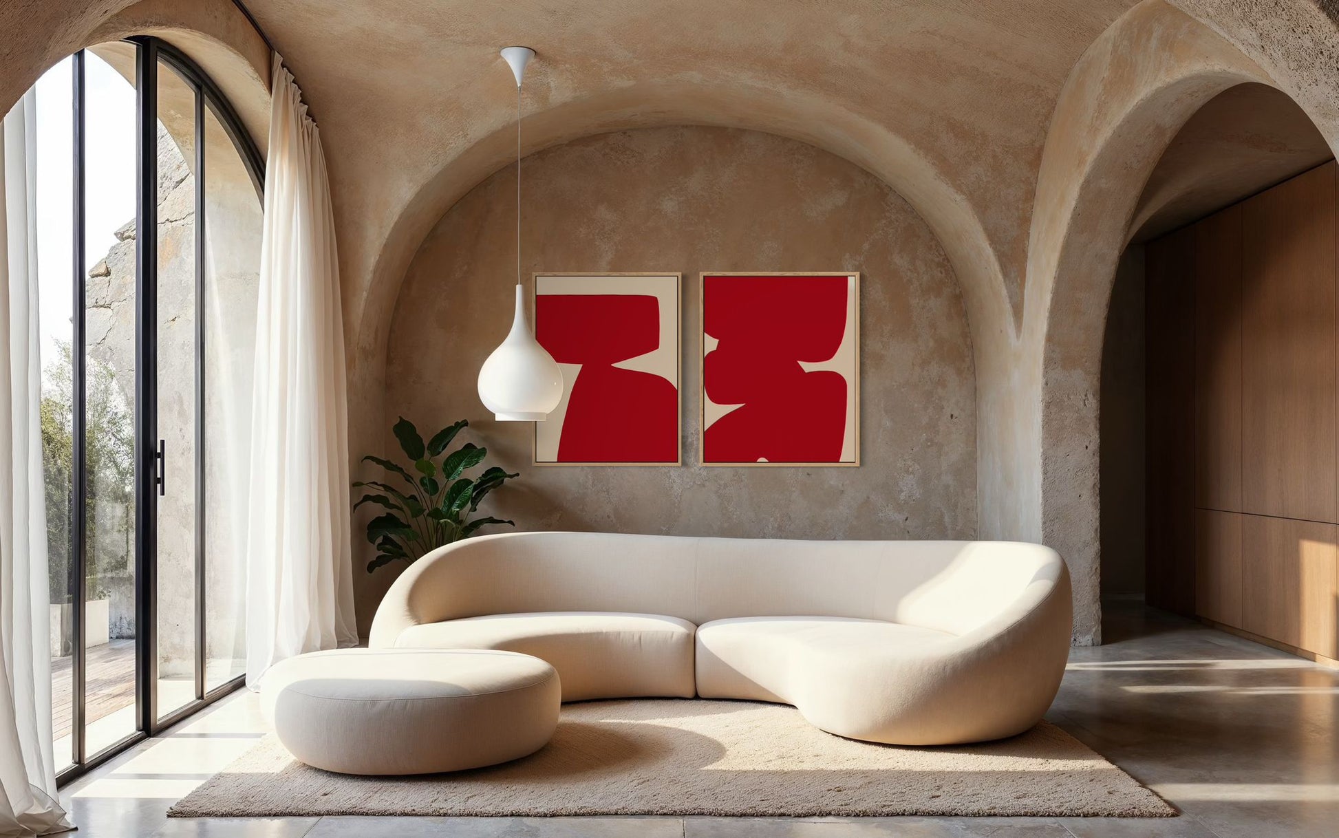 Obraz abstrakcyjny na płótnie w odcieniach czerwieni - RED SHAPE II