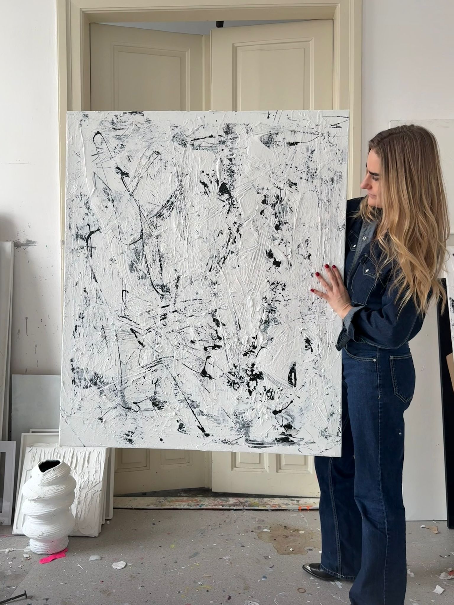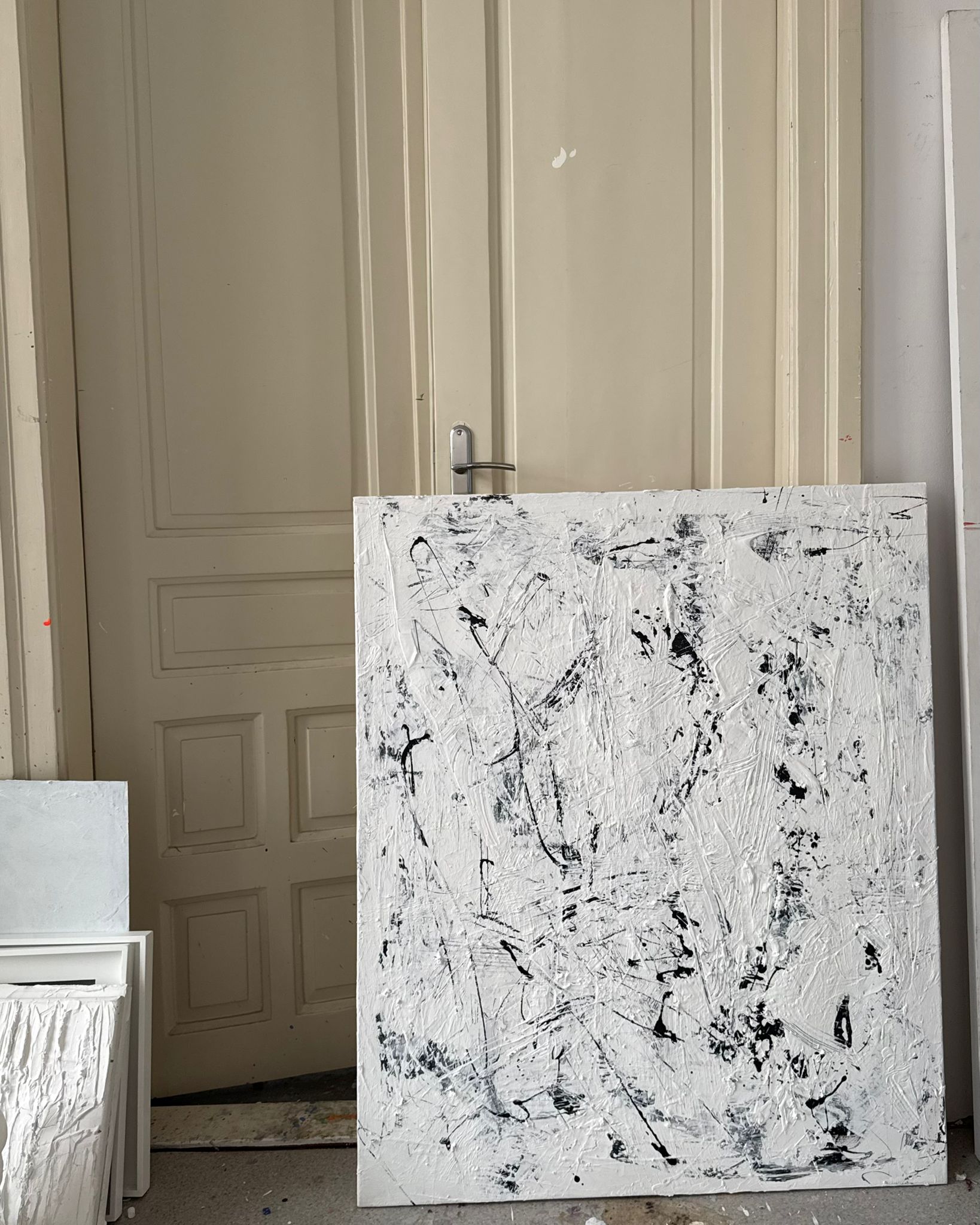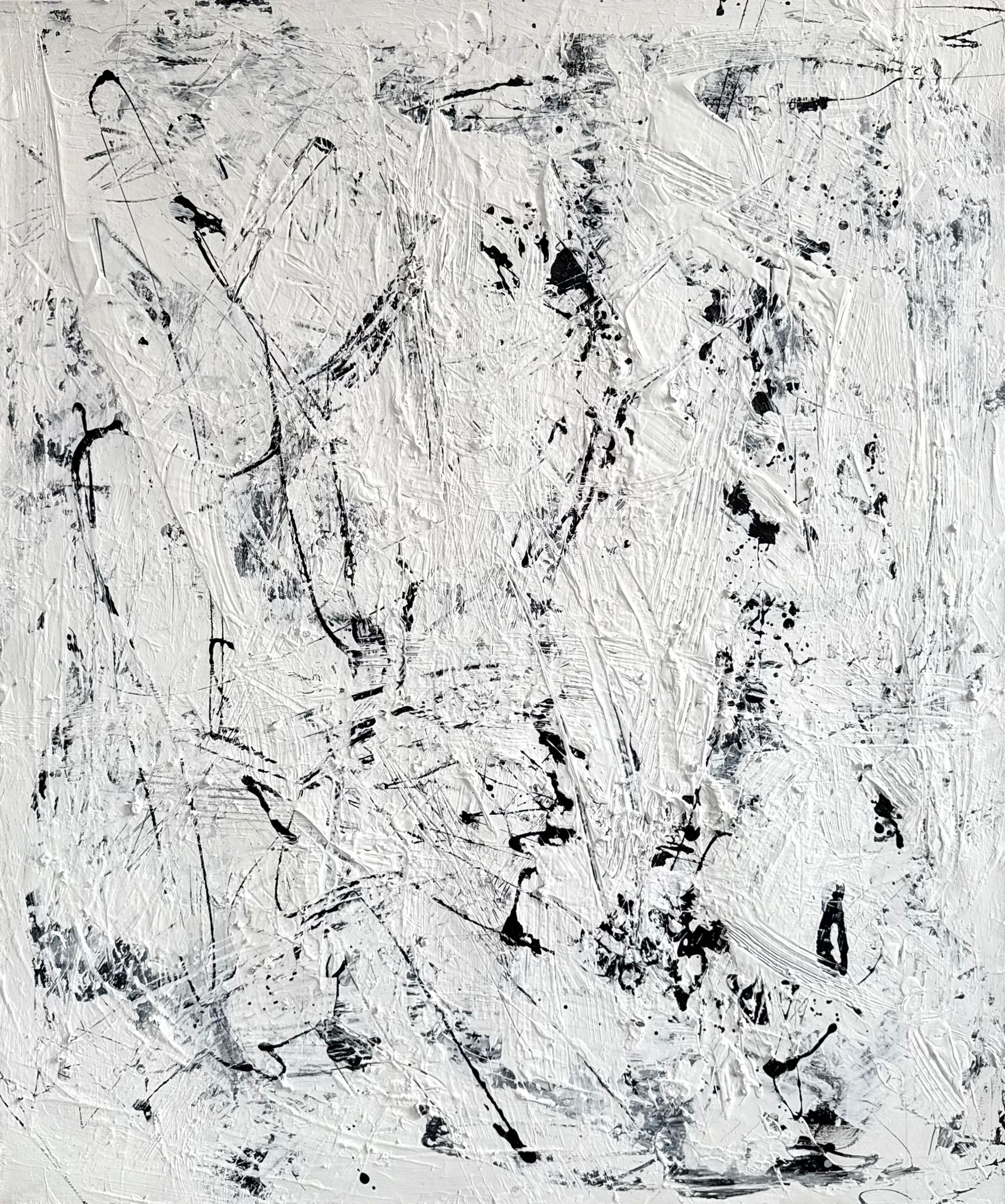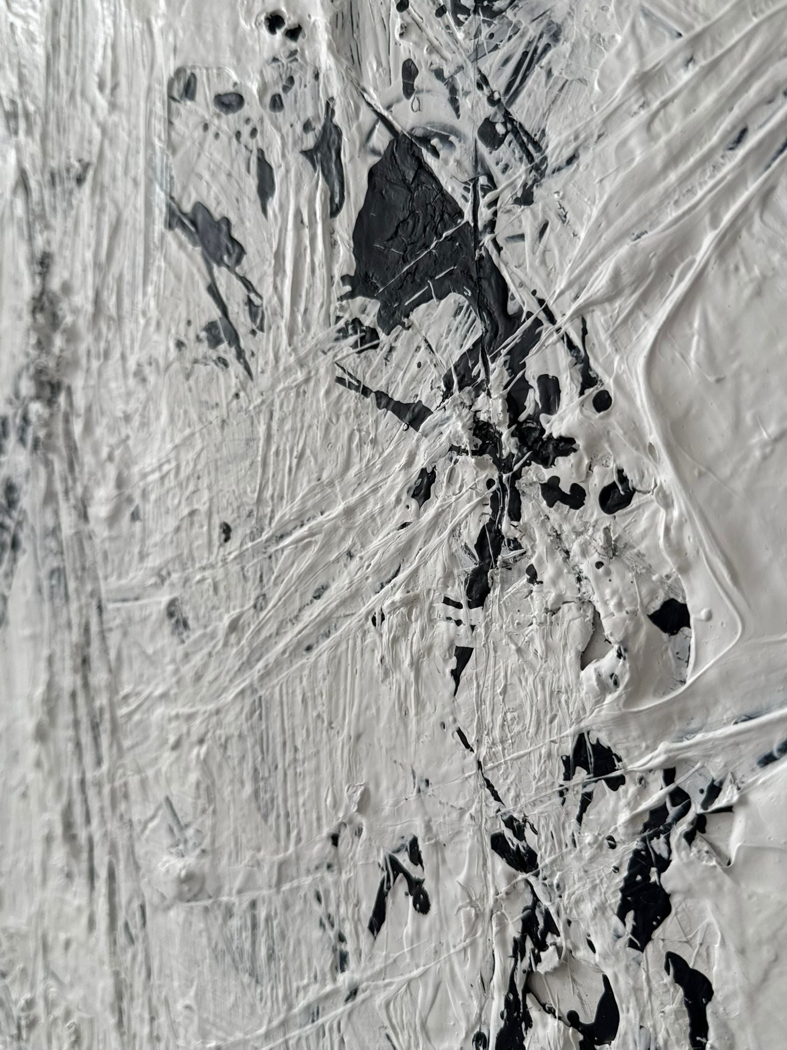 Obraz obstrakcyjny malowany na płótnie w kolorze biało-czarnym