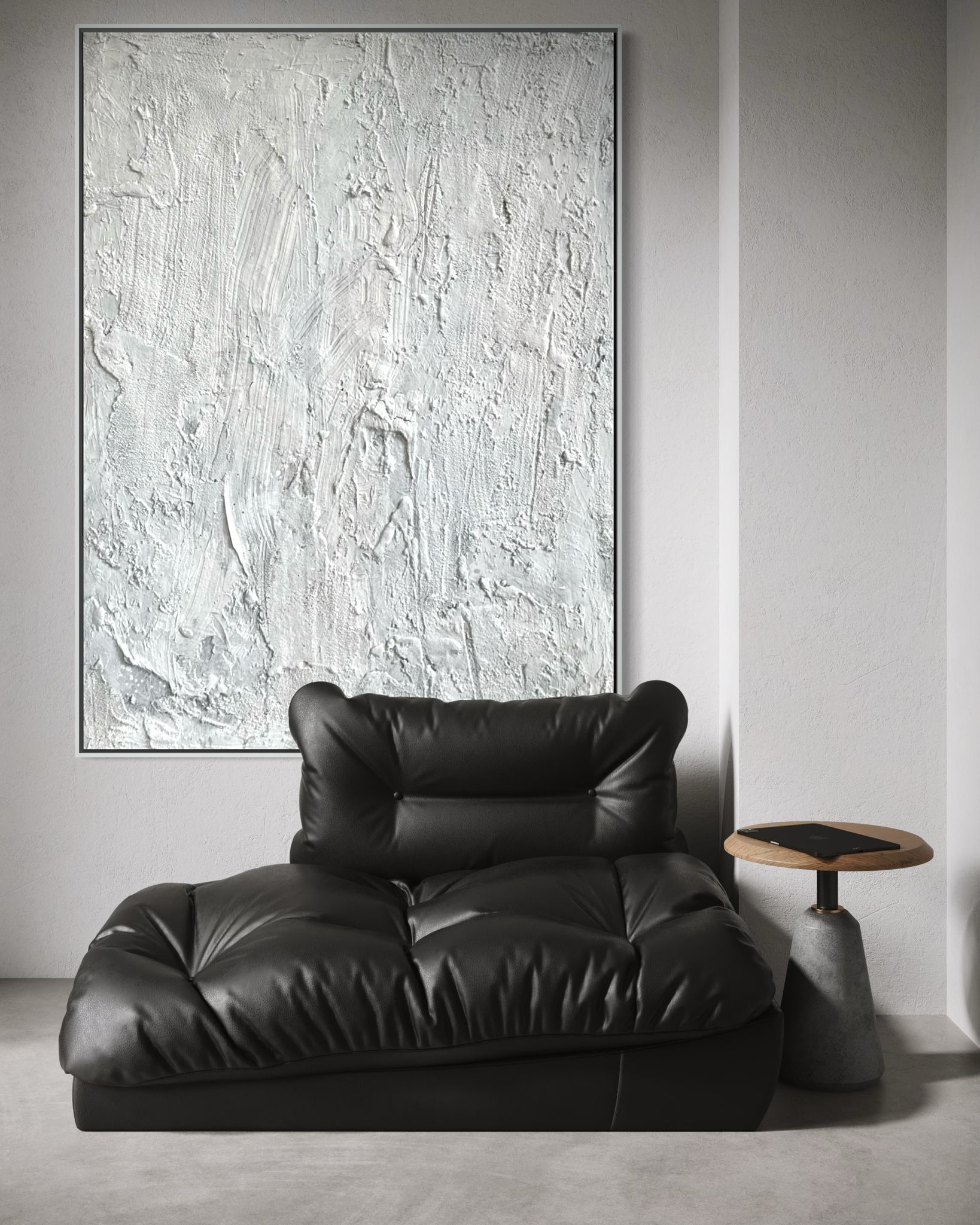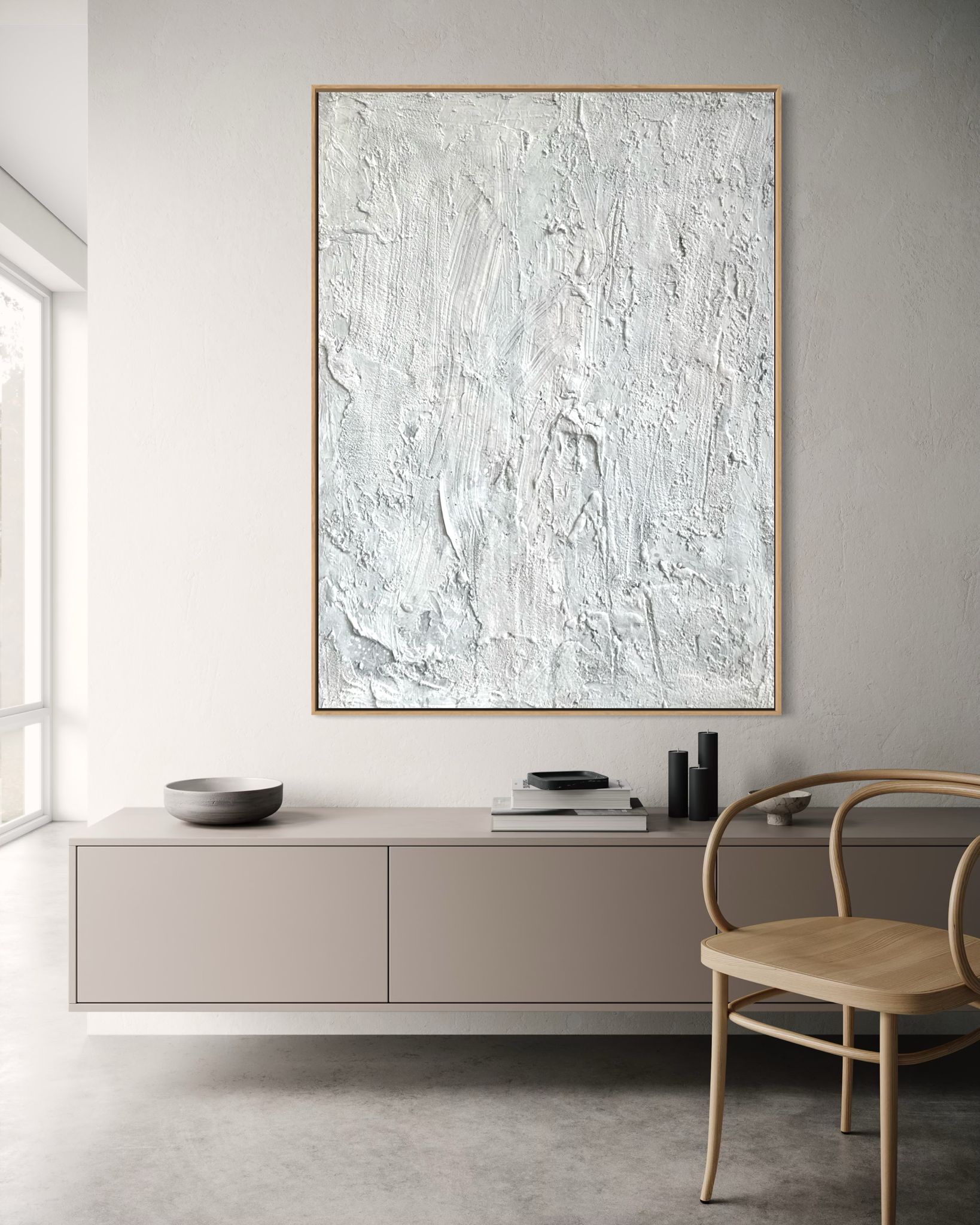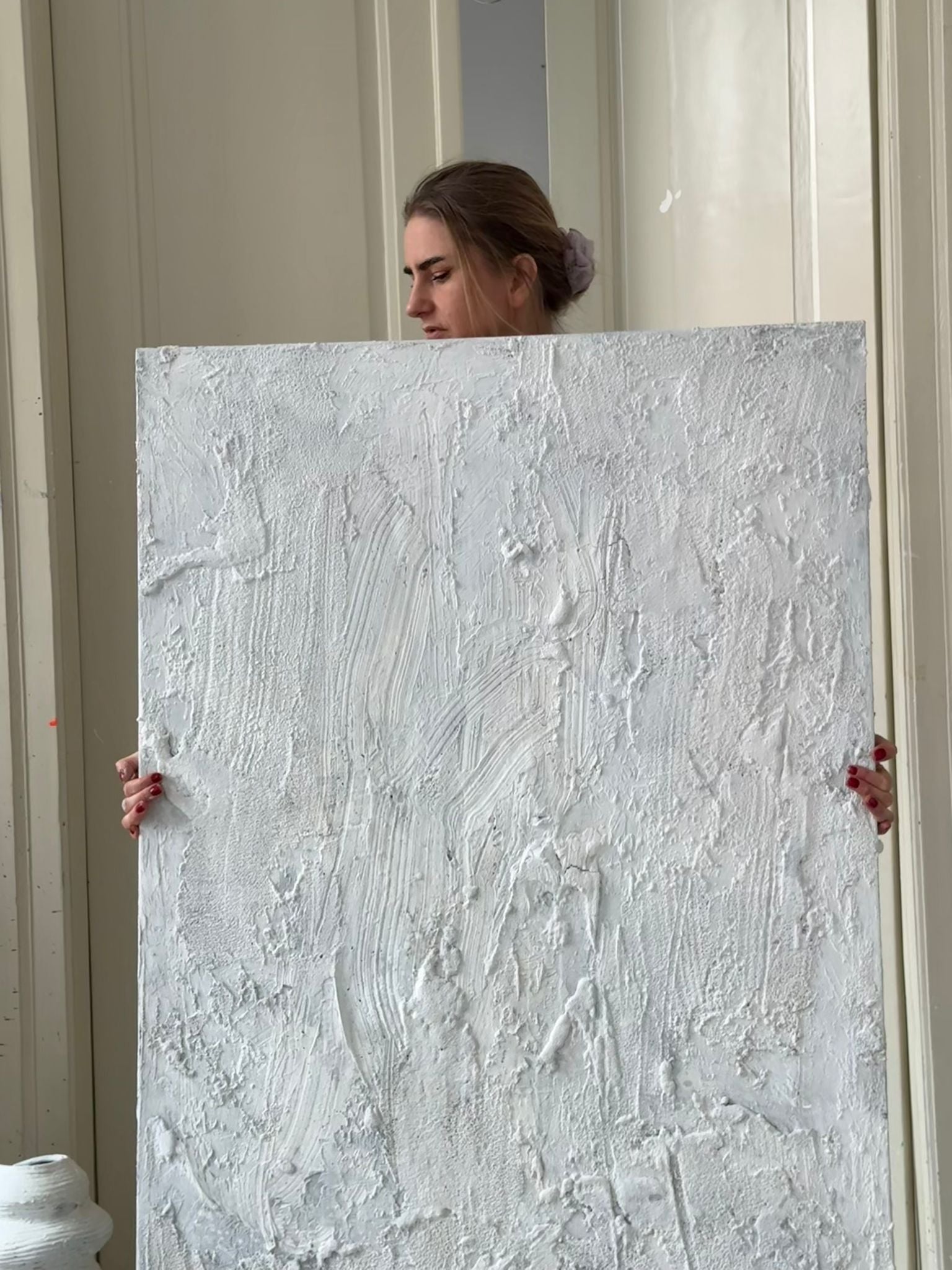 Obraz strukturalny malowany na płótnie w kolorze białym