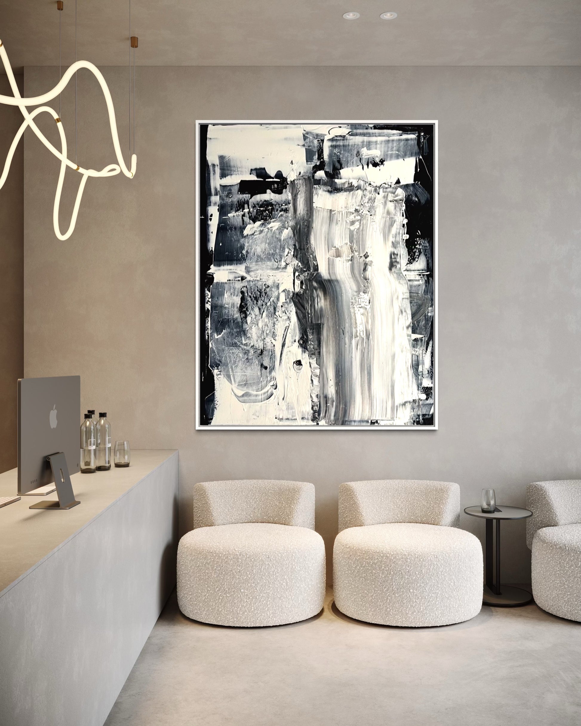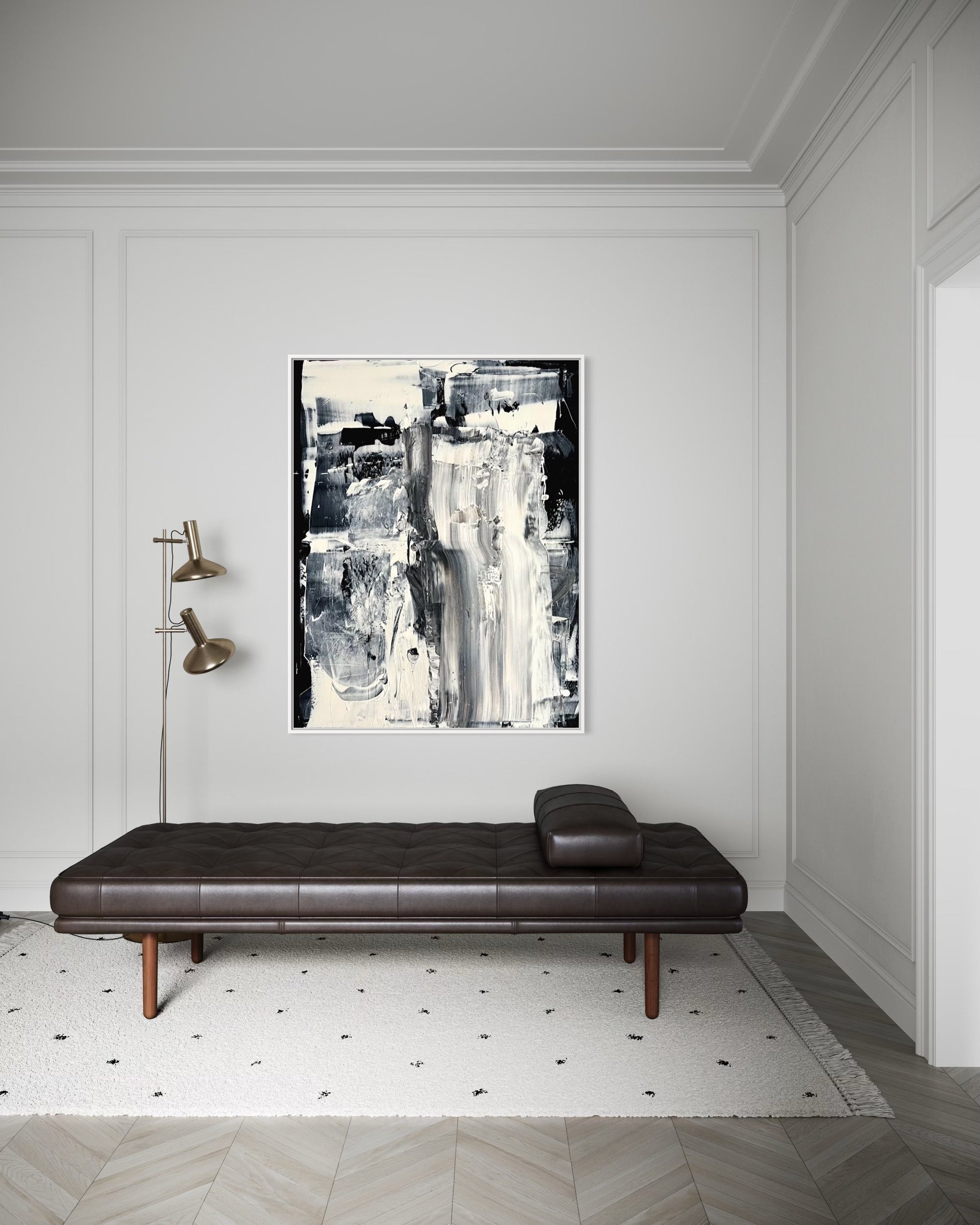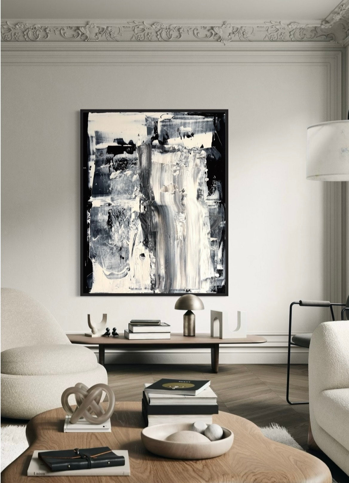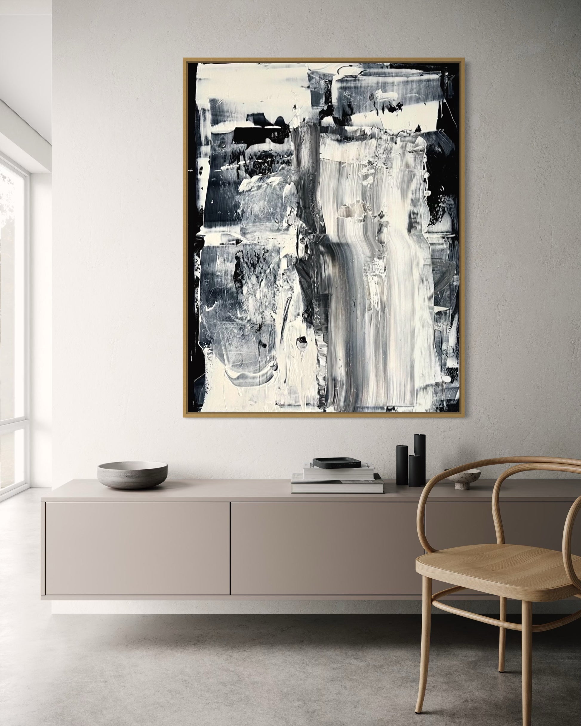 Obraz abstrakcyjny na płótnie w odcieniach czarno-białych - ROW HARMONY