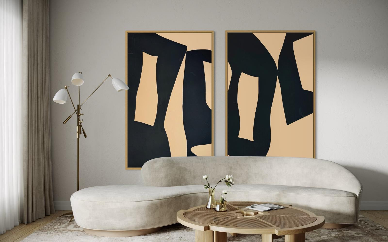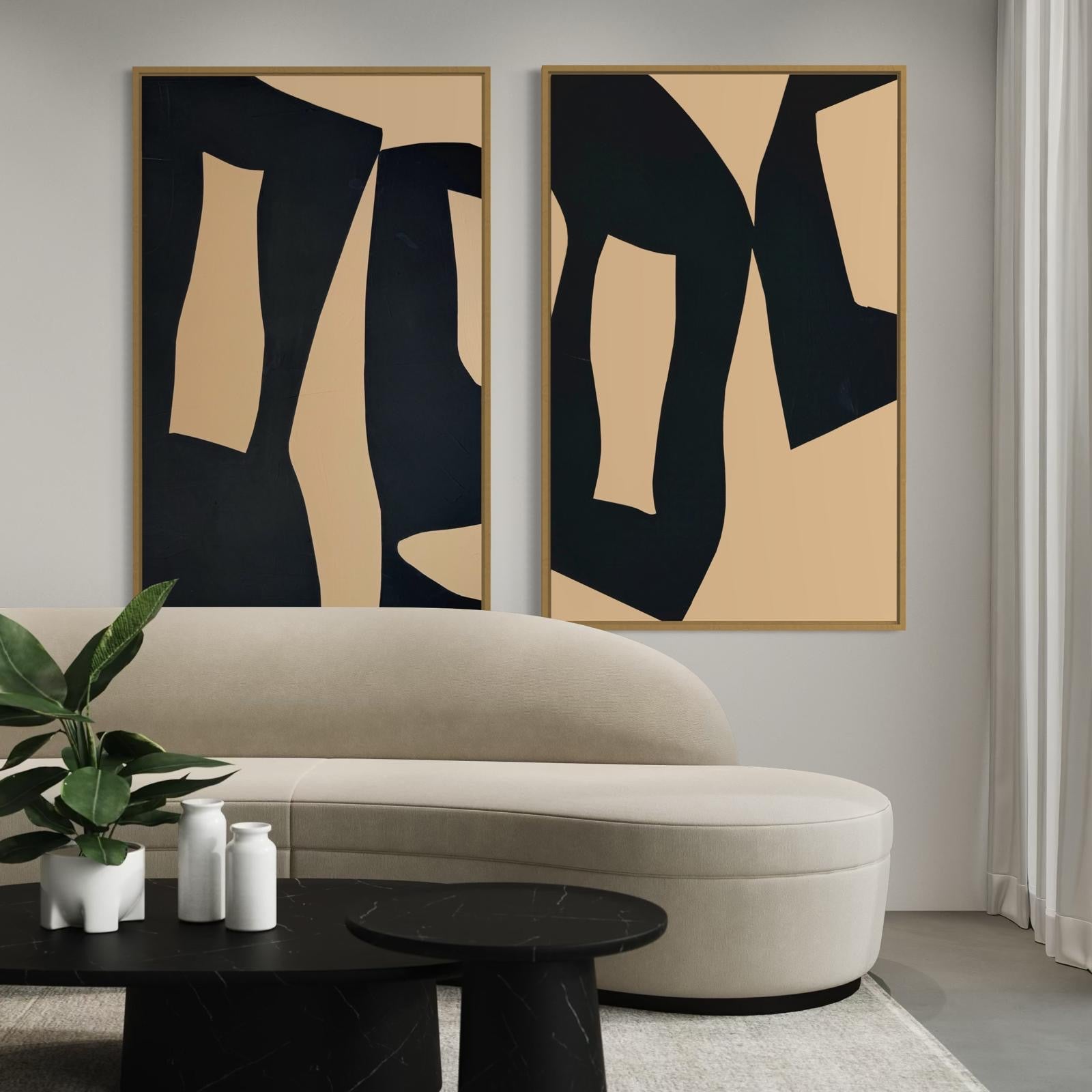 Zestaw 2 – Obrazy abstrakcyjne na płótnie w kolorze czarno-karmelowym (2 sztuki)